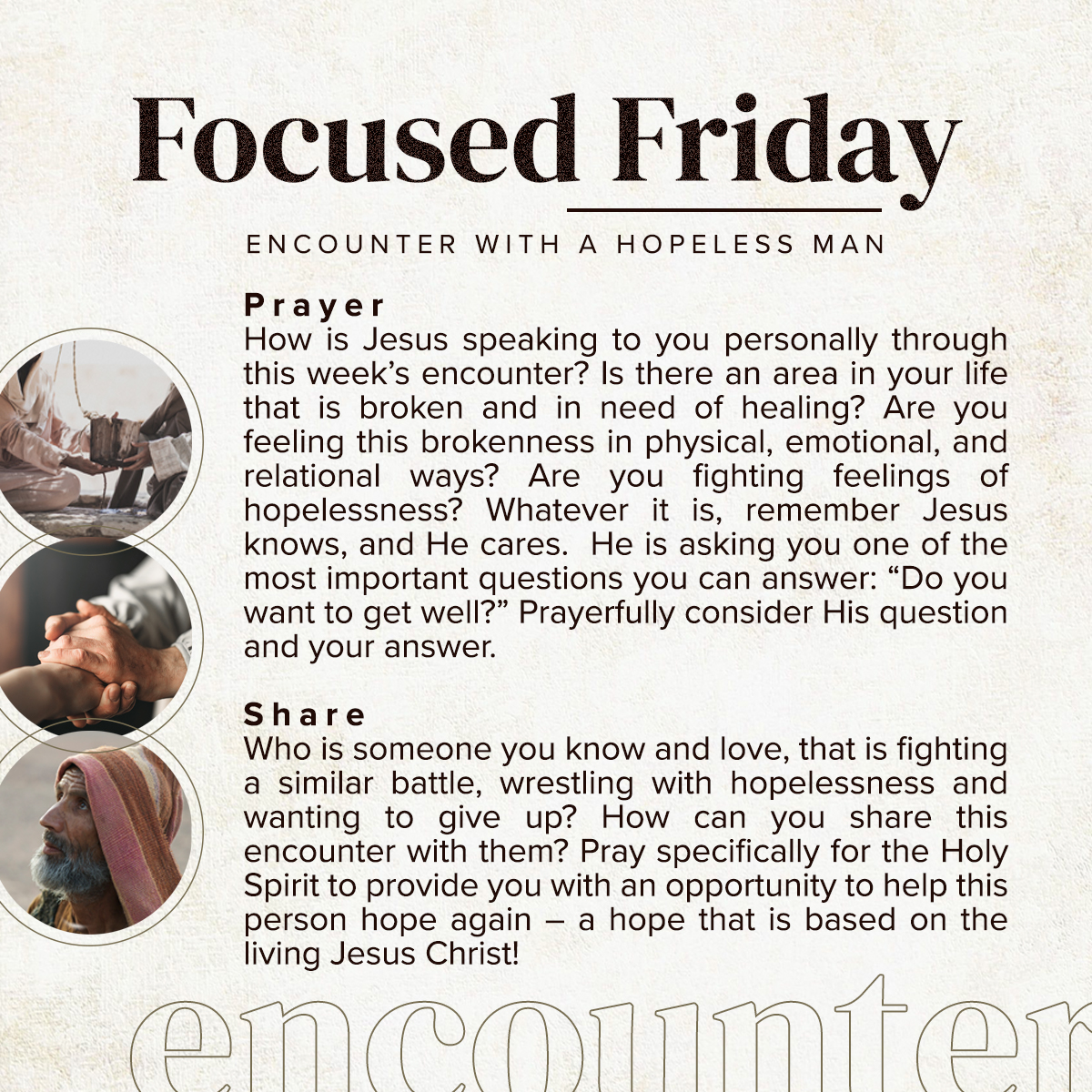 I probably don’t need to convince anyone that we are broken people, living in a broken world. And the brokenness in your life might not look the same as the guy by Pool of Bethesda. But it’s no less real. And when that brokenness piles up over the years, it can lead to hopelessness. So just like the guy at the pool needed a healer, so do we.